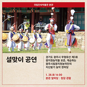 | 1월 28일(화) 14:00 | 설맞이 공연 - 지신밟기 농악 한마당 | 본관 앞마당 |