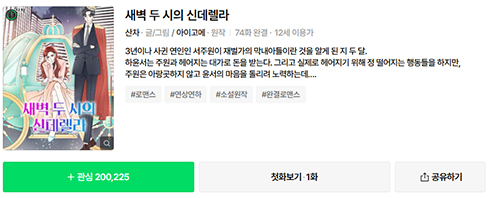 아이고메 원작, 산차 글·그림 웹툰 <새벽 두 시 신데렐라>는 2020년 8월 18일부터 매주 수요일에 연재되었습니다.