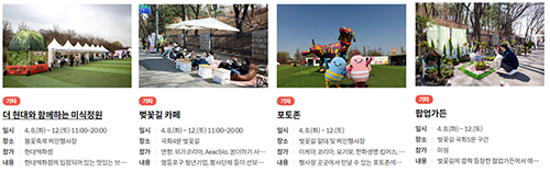 - 팝업가든: 4월 8일 ~ 12일, 벚꽃길 (국회5문). 깜짝 정원 이벤트.