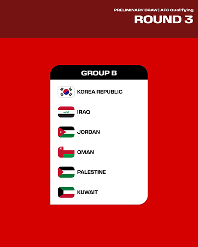 2024년 6월 27일 2026 FIFA 북중미 월드컵 아시아지역 3차 예선 조 추첨 결과가 나왔습니다.