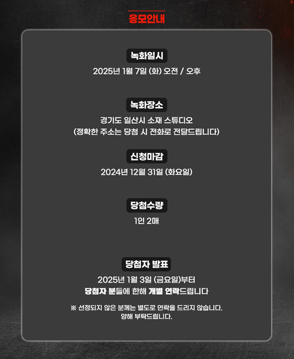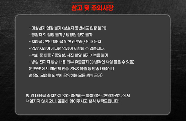 📌 방청신청은 프로그램 방송 일정에 맞춰 진행되므로 신청기간이 따로 있습니다.