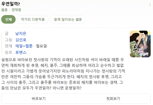 드라마 <우연일까?>는 2011년도에 연재된 네이버 웹툰 <우연일까?>를 원작으로 합니다.